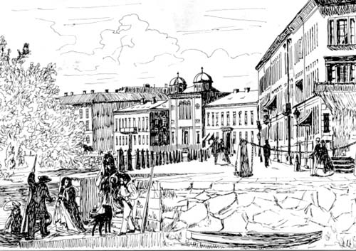 Photo: Ett fotograferat litografi från 1860 som visar Göteborgs synagoga [Wikipedia].
